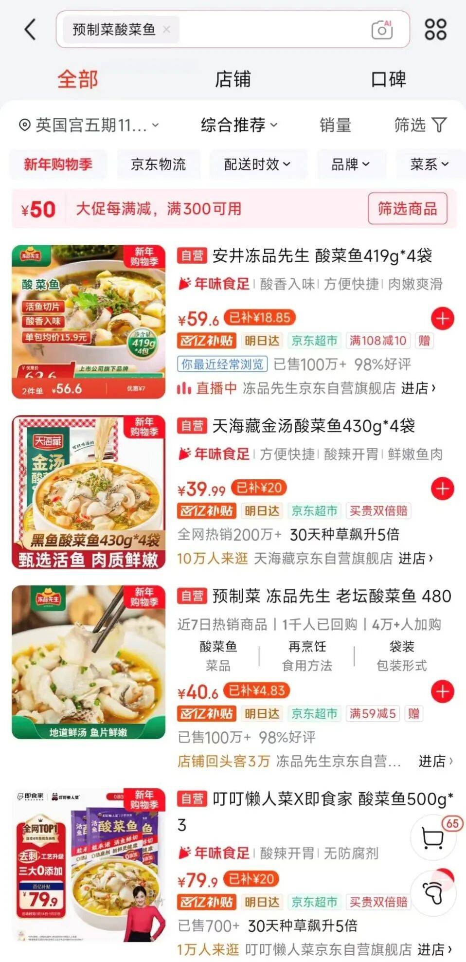 临近腊月,李丽默默将沈万三的猪肘子、聪厨的梅菜扣肉、温氏的盐焗鸡、广州酒家的脆皮乳鸽和冻品先生的酸菜鱼加进购物车。